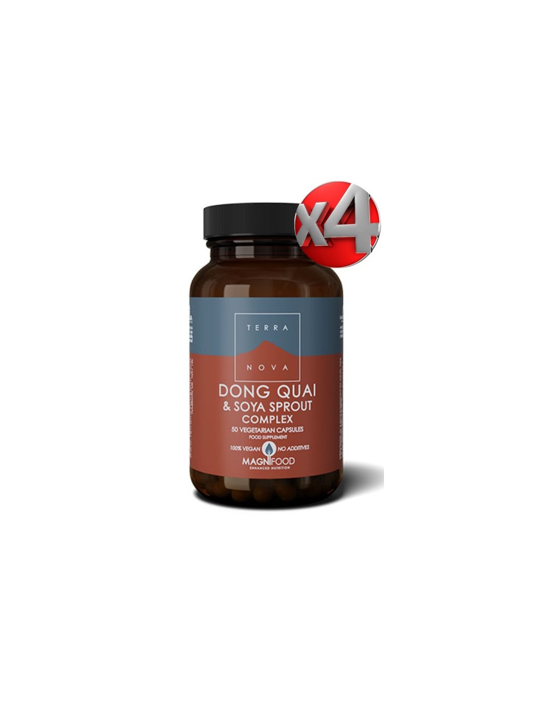 Por 2 cápsulas: Complejo Magnifood 1.125 mg Que aporta: Dong quai 250 mg Soja, brotes ........200 mg Arroz, salvado estabilizado..150 mg Feno gramoseco, semilla ...100 mg Kudzu, raíz 100 mg Avena verde, semilla (liofilizada fresca) .......100 mg Rodiola, raíz (extracto acuoso) (liofilizada fresca).....75 mg Diente de león, hoja (liofilizada fresca) .....50 mg Berro (liofilizado fresco) ...25 mg Cúrcuma, raíz (liofilizada fresca) ...25 mg Alfalfa, flor y hoja (liofilizadas frescas) ....25 mg Espino amarillo, baya/hoja (lioflizadas frescas)......22,25 mg Cápsula vegetal (hidroxipropilmetilcelulosa) ...236 mg Arabinogalactanos de alerce (Larix occidentalis) .2,75 mg *Contiene avena y soja.