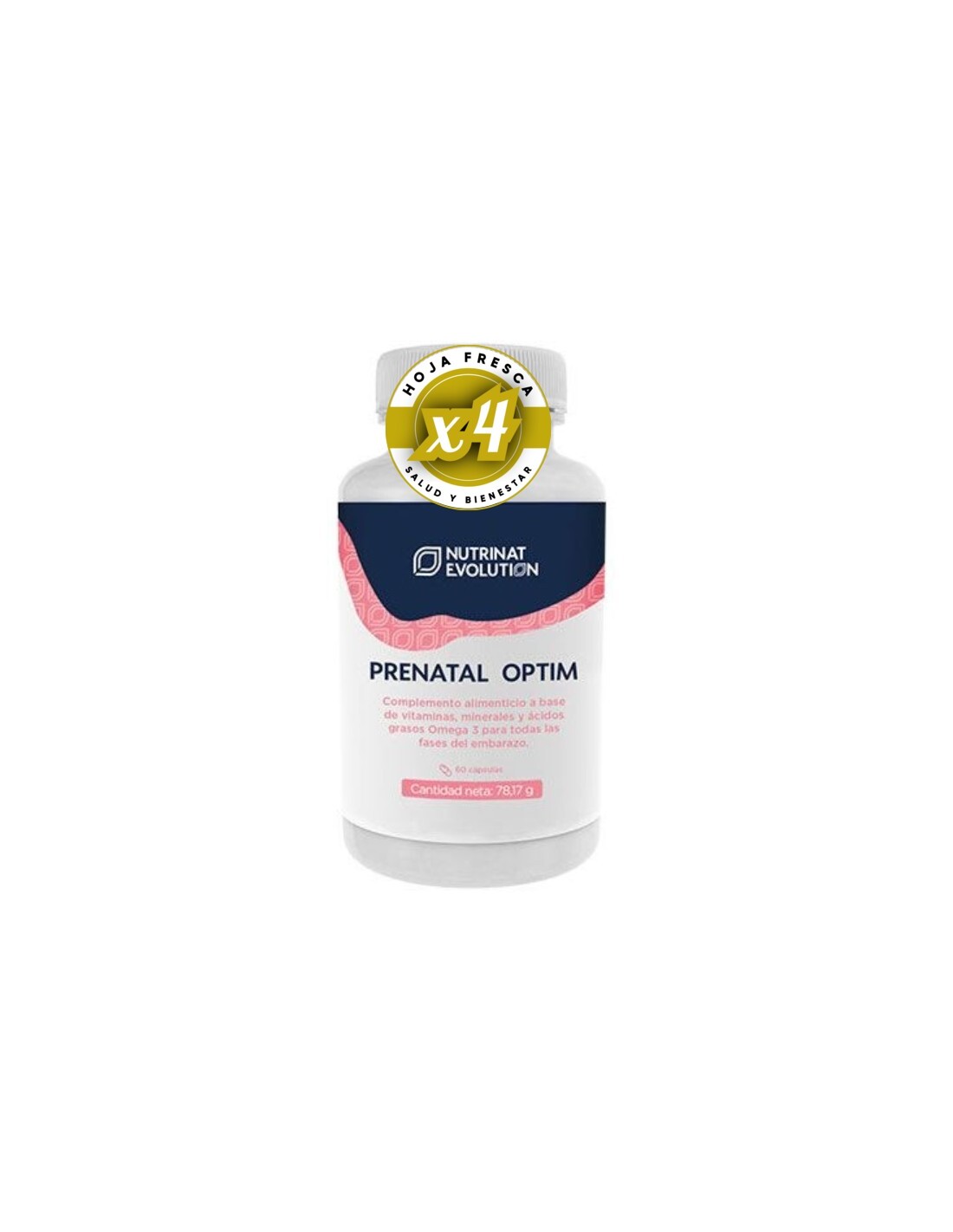 Prenatal Optim de Nutrinat Evolution es un complemento alimenticio para todas las fases del embarazo por su alto contenido en DHA, vitaminas, minerales y colina. Los folatos contribuyen al crecimiento de los tejidos maternos durante el embarazo. La ingesta materna de DHA ayuda al desarrollo normal de ojos y cerebro del feto y del lactante alimentado con leche materna.