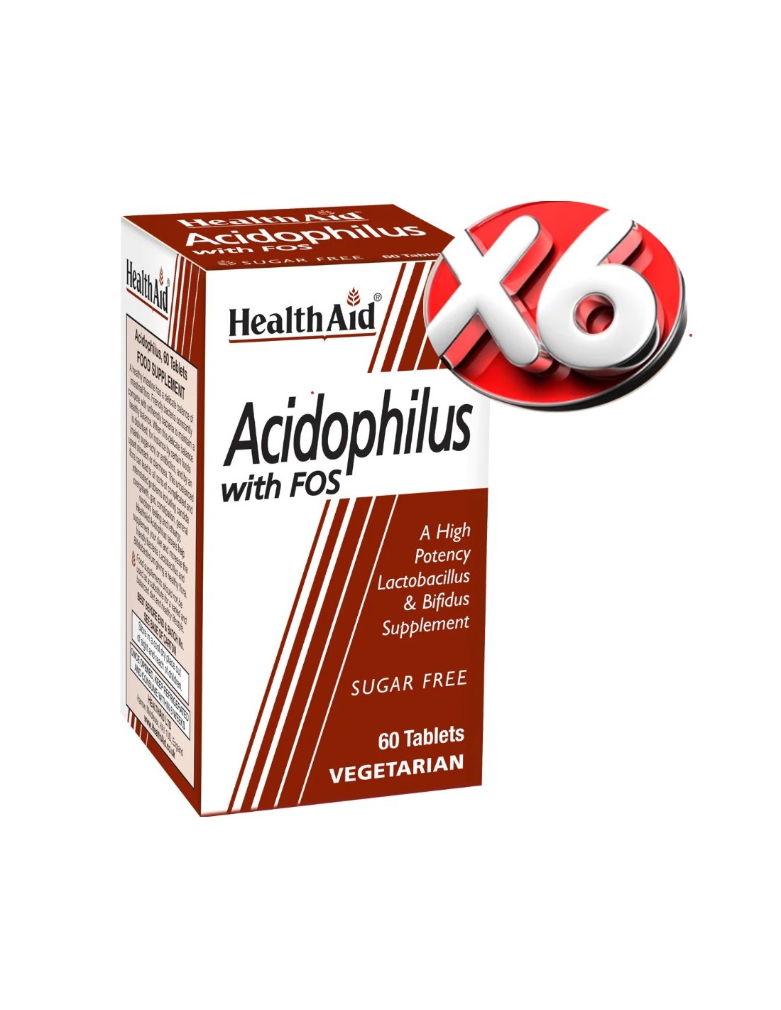 Por 1 comprimido: Bifidobacterium bifidum......50 millones (17 mg) Lactobacillus acidophilus.....50 millones (5 mg) Fructo-oligosacáridos (FOS) 100 mg Agentes de carga (celulosa microcristalina, suero de leche en polvo), antiaglomerantes (fosfato dicálcico dihidrato, ácido esteárico, estearato de magnesio), agente de recubrimiento [hidroxipropilmetilcelulosa (HPMC)].