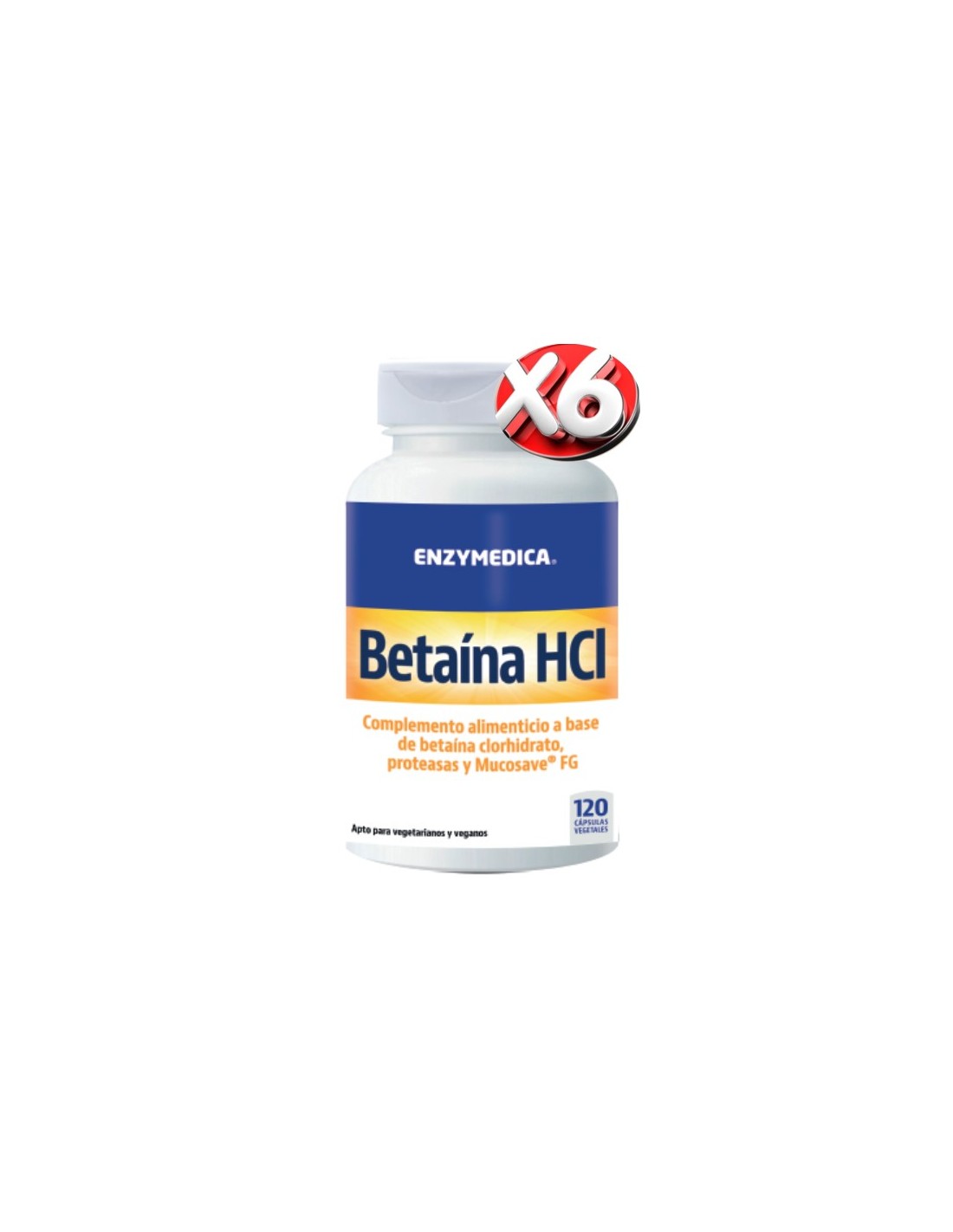 Complemento alimenticio a base de betaína clorhidrato, proteasas y MucosaveFG, para apoyar el normal mantenimiento digestivo. Producto vegano. No contiene organismos genéticamente modificados (OGMs).