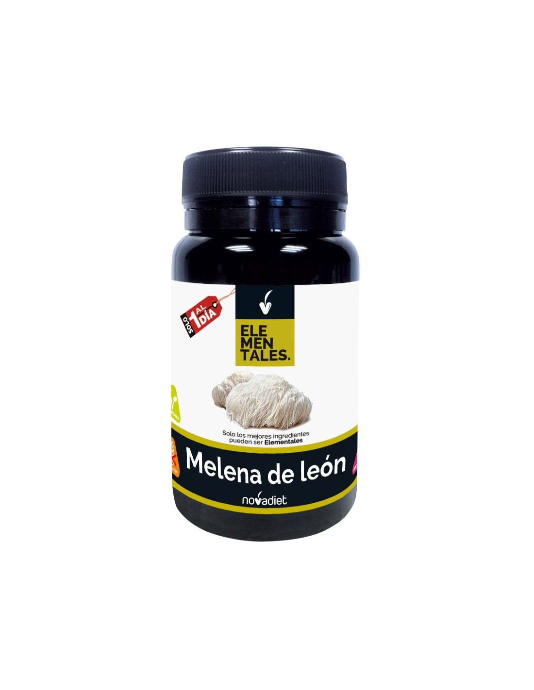 Melena de león (Hericium erinaceus, cuerpo fructífero, 500 mg, E.S., titulado al 50% en polisacáridos y 10% en beta-glucanos), Maltodextrina, Antiaglomerantes (dióxido de silio, sales magnésicas de ácidos grasos). Cubierta: Agua, Hidroxipropilmetilcelulosa.
